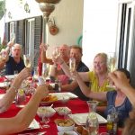 Als klap op de vuurpijl hoor ik dat mijn beste vriendin ook weer een gevaarlijke moedervlek moet laten weg halen. Ook zij is al aan de situatie gewend. “ Joh, dan loop ik toch met een opgetrokken wenkbrauw rond. Dan straal ik tenminste gezag uit.” Na de schrik van afgelopen november toen ze te horen kreeg dat ze een melanoom had, straalt ze nu een ongekende rust, openheid en tevredenheid uit. Ze doet niet panisch over een zonnestraaltje op haar gezicht. Gezamenlijk vertrouwen wij dat het goed komt. Een andere gast is volledig herstelt en clean verklaard. Zij ziet er stralend uit. Zo maak ik een week mee omringd met mensen die te maken hebben of hebben gehad met een levensbedreigende situatie. In plaats van te overleven springen zij in ‘volop leven’.
