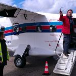 Eus toont een brede glimlach op zijn gezicht. We houden elkaars hand vast. Deze vliegreis van Portimao naar Caiscais is een geslaagd verjaardagscadeau.